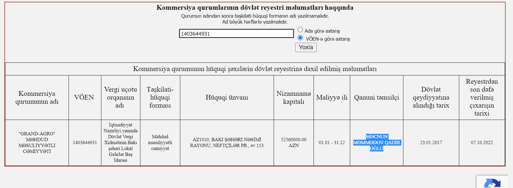 Marja.az xəbər verir ki, təyinatadək Məcnun Məmmədov 52 milyon 560 min manat nizamnamə kapitalı olan "GRAND-AGRO" MMC-nin direktoru olub. Bu şirkətin hüquqi ünvanı Bakı şəhəri, Nəsimi rayonu, Neftçilərr pr 153-dür (Port Baku).