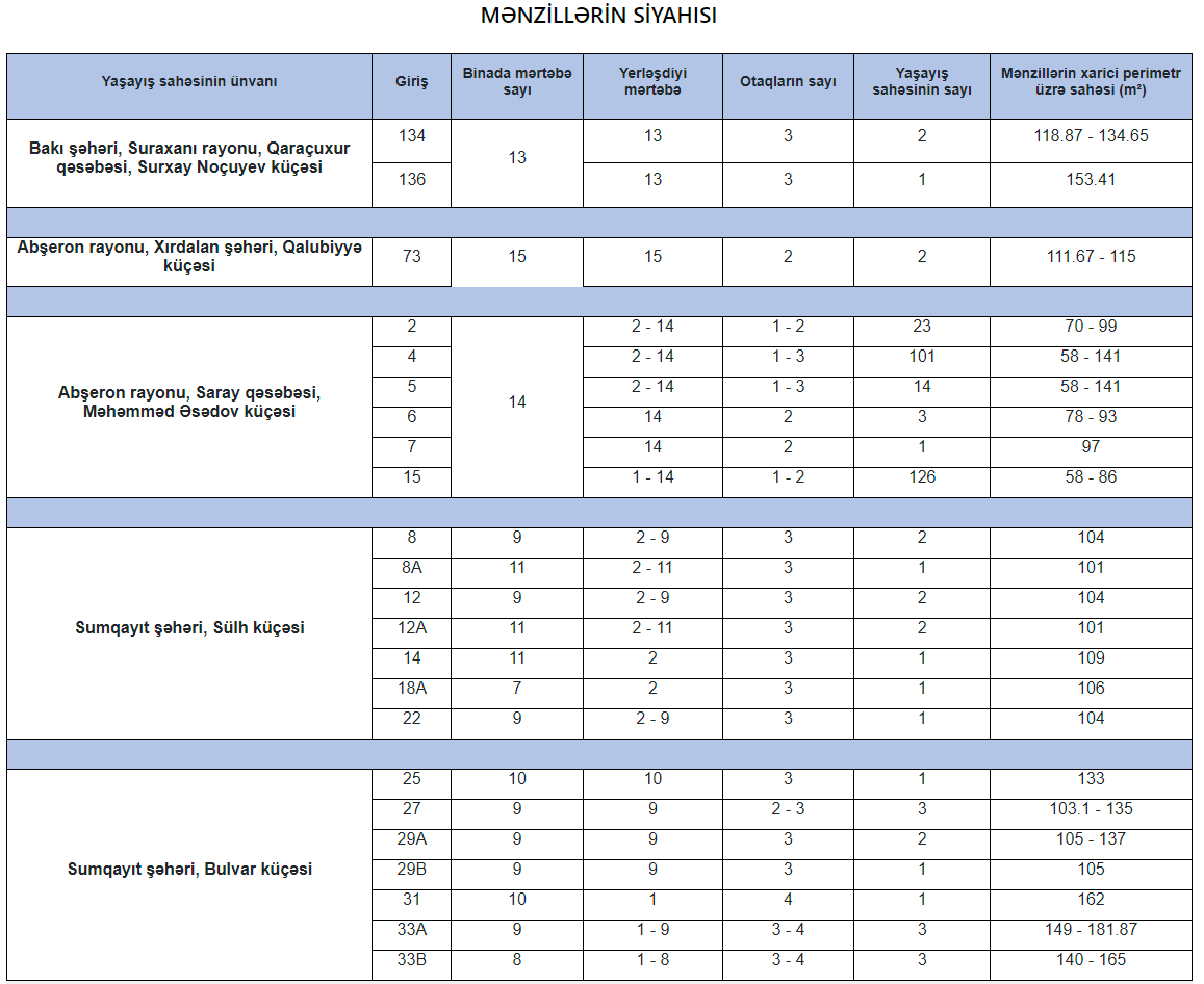 Kirayə mexanizmində 233 yeni mənzil - aylıq ödənişi 376 manatdan başlayır