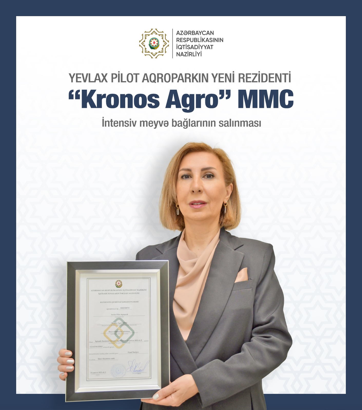 Yevlax Pilot Aqropark-da fərdi sahibkar Əli Əhmədova və "Kronos Agro" MMC-yə rezident statusu verilib.