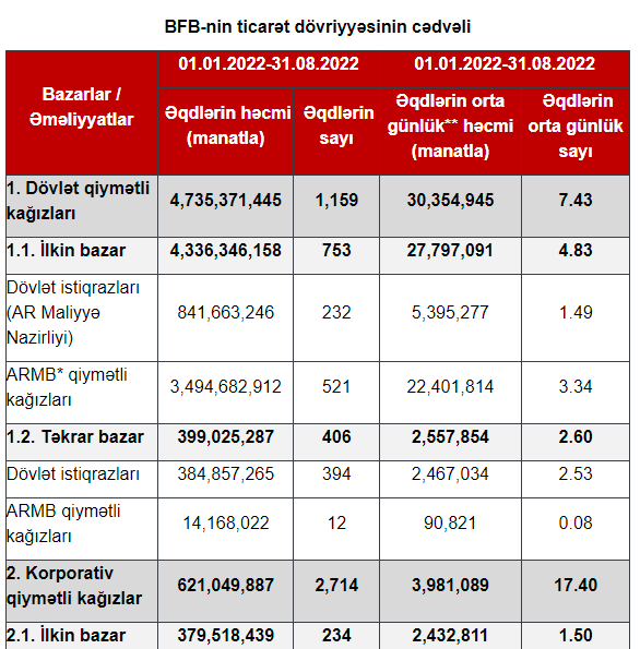 2022-ci ilin yanvar-avqust ayları ərzində Maliyyə Nazirliyinin 841 milyon 663 min manatlıq istiqrazları yerləşdirilmişdi.