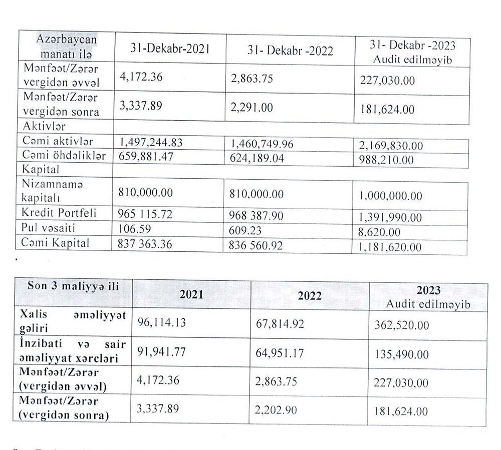 Ötən il kredit təşkilatının cəmi aktivləri 709 min 81 manat və ya 48,5% artaraq 2 milyon 169 min 830 manata yüksəlib.