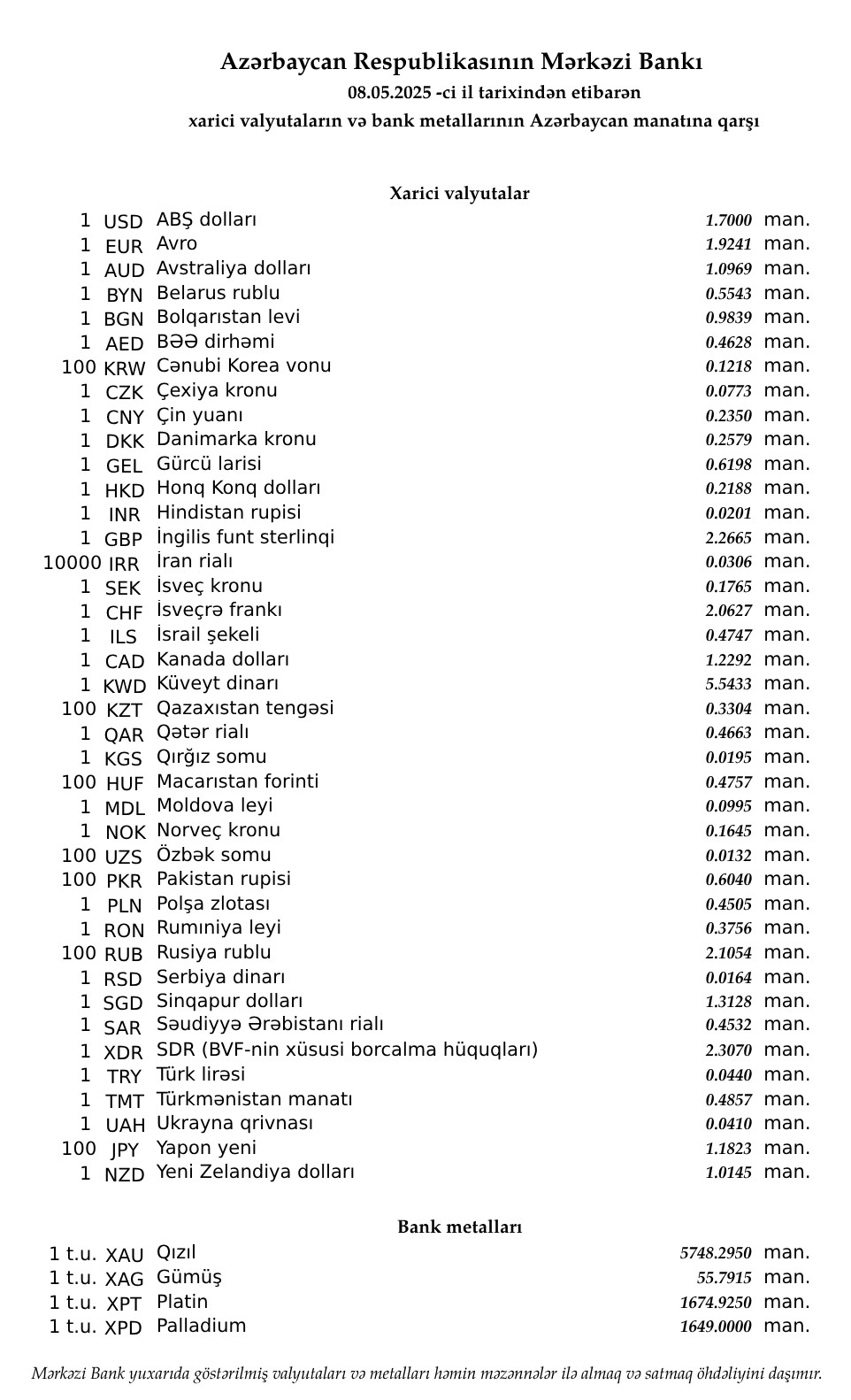 Dolların sabah üçün rəsmi məzənnəsi müəyyən olunub