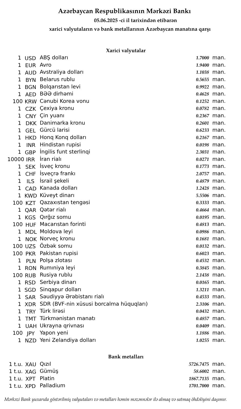 Dolların sabah üçün rəsmi məzənnəsi müəyyən olunub