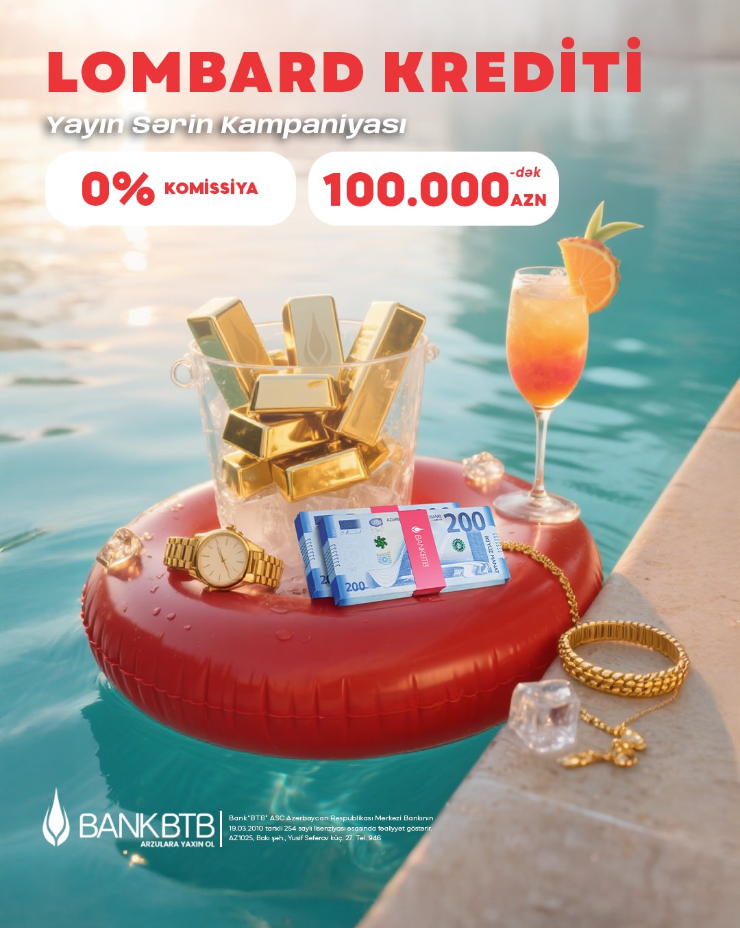 Kampaniya çərçivəsində müştərilər Banka qızıl zinət əşyalarını təqdim etməklə yüksək məbləğdə və sərfəli şərtlərlə lombard kreditinin rəsmiləşdirilməsi və nağdlaşdırılması zamanı heç bir komissiya ödəməyəcəklər.