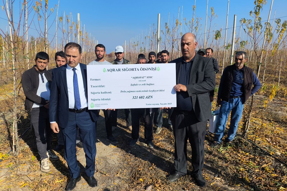 Azərbaycanda meyvə bağları üzrə ən böyük aqrar sığorta ödənişi edilib. Belə ki, Azərbaycanda meyvənin keyfiyyət itkisi üzrə 321 min manat sığorta ödənişi edilib25-ci ilin noyabr ayında Aqrar Sığorta Fondu tərəfindən ölkədə ilk dəfə olaraq meyvə bağlarında doludan keyfiyyət itkisi üzrə sığorta ödənişi həyata keçirilib.