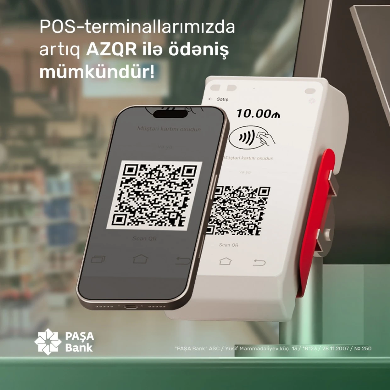 (®) Ölkənin aparıcı korporativ maliyyə institutu “PAŞA Bank” müştərilərin ödəniş prosesində daha sürətli və rahat seçimlərə sahib olması üçün POS-terminallarda AZQR kod funksionallığını istifadəyə verib.