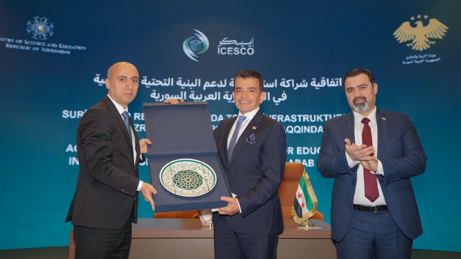 Bildirilib ki, İslam Dünyası Təhsil, Elm və Mədəniyyət Təşkilatının (ICESCO) Rabat şəhərində yerləşən Baş qərargahında Azərbaycan Respublikasının elm və təhsil naziri Emin Əmrullayev, Suriya Ərəb Respublikasının təhsil naziri Dr. Mohammed Abdulrahman Turko və ICESCO-nun Baş direktoru Dr. Salim bin Məhəmməd əl-Malikin iştirakı ilə “Azərbaycan Respublikasının Elm və Təhsil Nazirliyi, Suriya Ərəb Respublikasının Təhsil Nazirliyi və İslam Dünyası Təhsil, Elm və Mədəniyyət Təşkilatı arasında Suriya Ərəb Respublikasında təhsil infrastrukturunun bərpası üzrə strateji tərəfdaşlıq haqqında Saziş” imzalanıb.