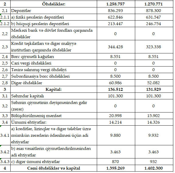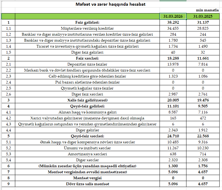 Bank 2025-ci ilin ilk rübünü 4 milyon 657 min manat xalis mənfəət ilə bağlamışdı.