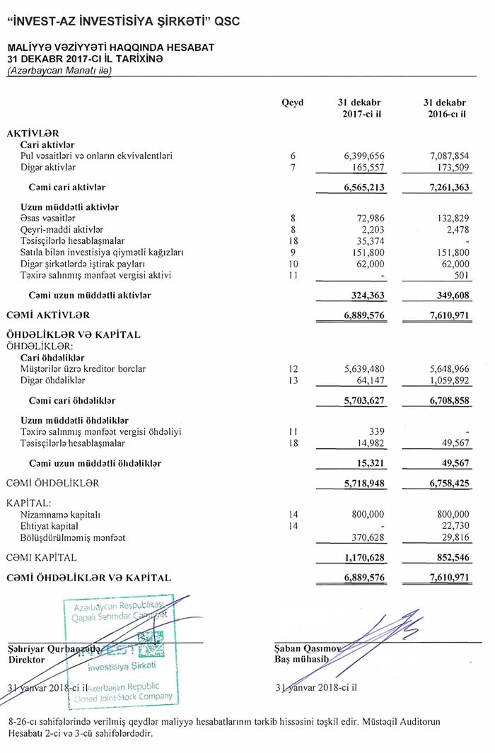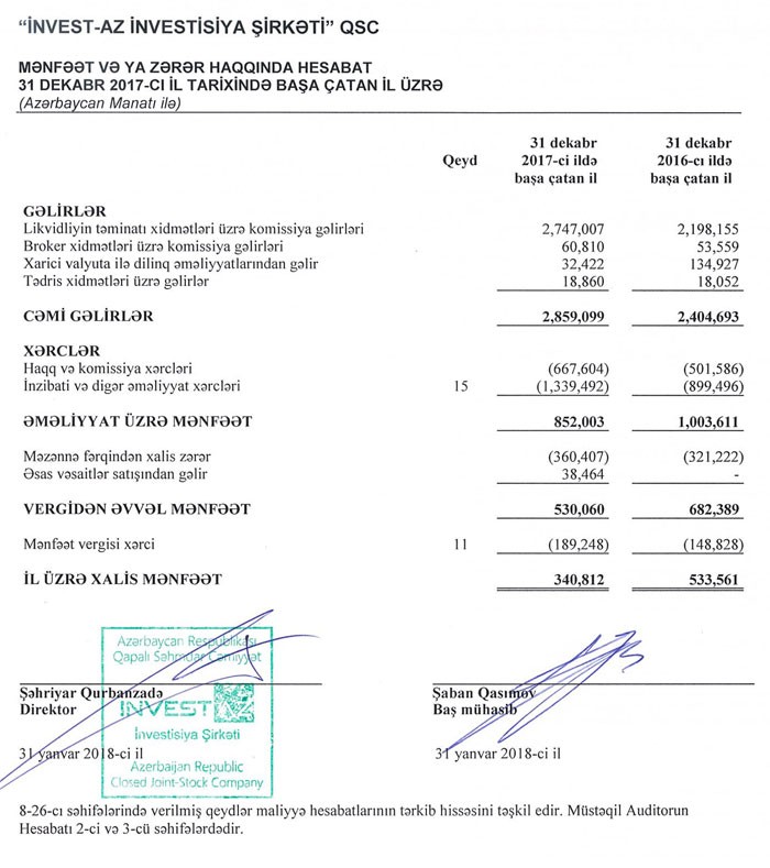 Qeyd edək ki, “İnvestAZ” 2016-cı ili 533 min 561 manat xalis mənfəətlə bağlamışdı.