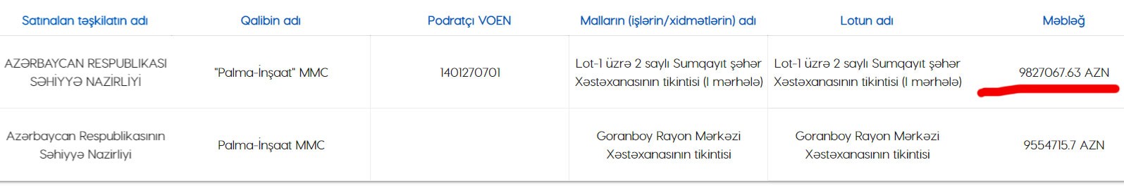 Qeyd edək ki, Səhiyyə Nazirliyinin sifarişi ilə Goranboy Rayon Mərkəzi Xəstəxanasının tikintisini də "Palma-İnşaat" MMC həyata keçirir. Müvafiq müqavilənin məbləği 9 milyon 555 min manatdır.