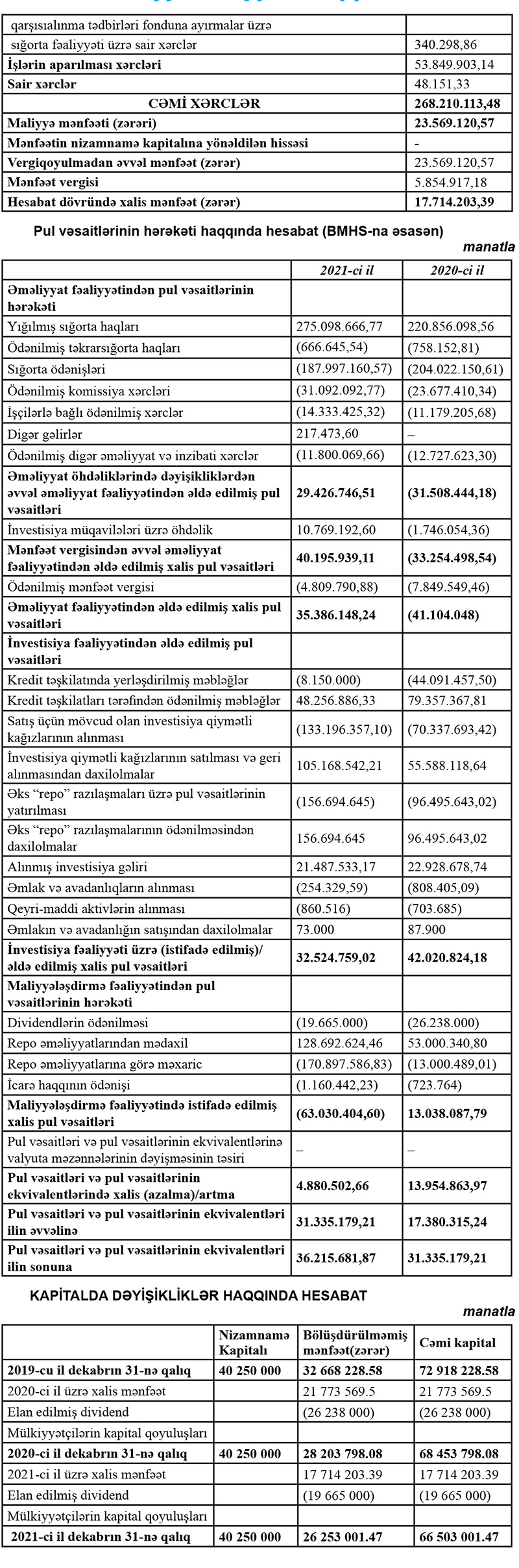 Eyni zamanda, Şirkət ötən il sığorta ehtiyatının yaradılmasına gəlirlərindən 43 milyon 500 min manat ayırıb (2020-ci ildə ehtiyatdan azad olmuş 43 milyon 369 min manat gəlirə əlavə edilmişdi)