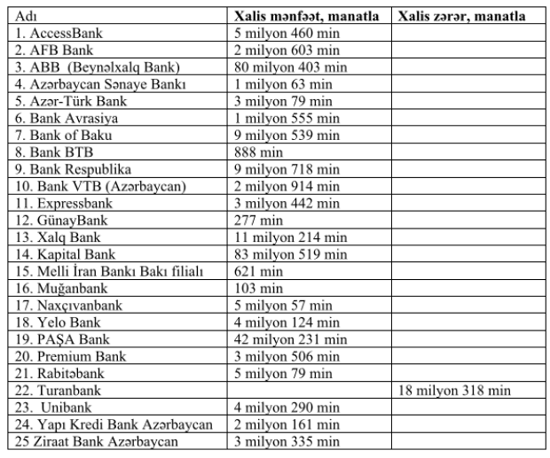 24 bank xalis mənfəət açıqladı - SİYAHI