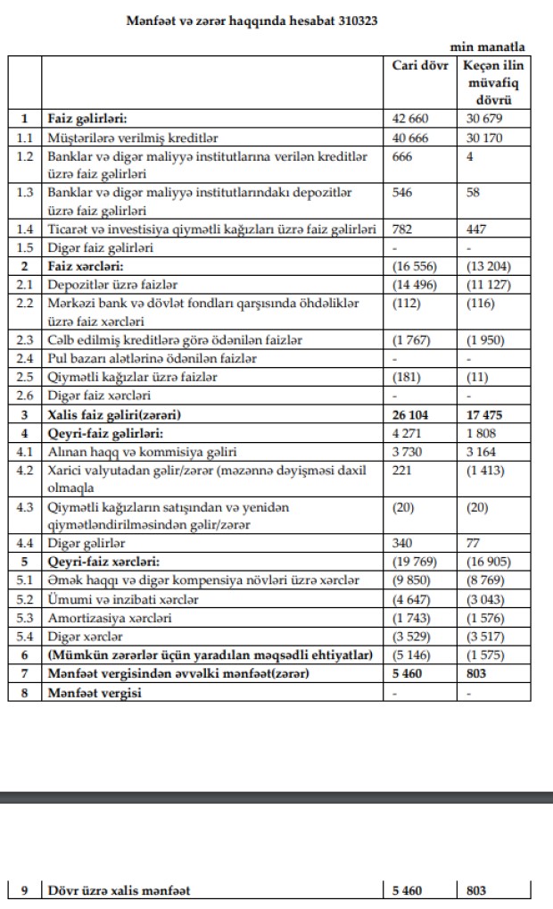- Xalis mənfəəti də 2022-ci ilin müvafiq dövrünün nəticəsi ilə müqayisədə 6.8 dəfə artaraq 5.5 milyon manata çatıb.