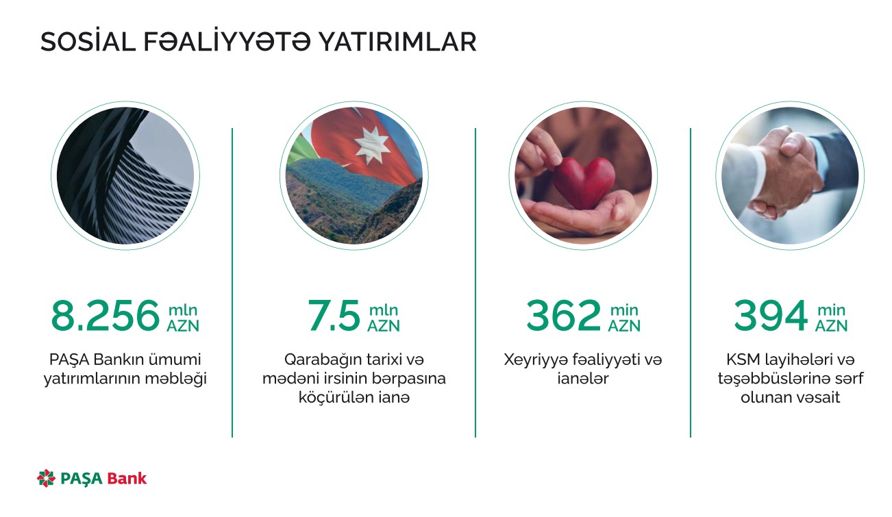 "PAŞA Bank" ASC 2022-ci ildə sosial fəaliyyətə yatırımlarını açıqlayıb.