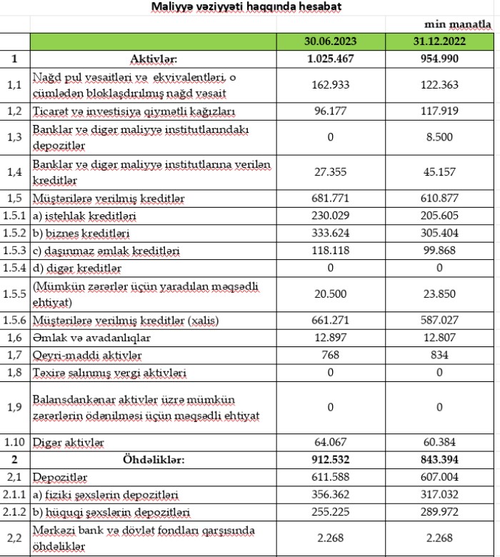 Kredit portfelini 70 milyon manatdan çox böyüdüb