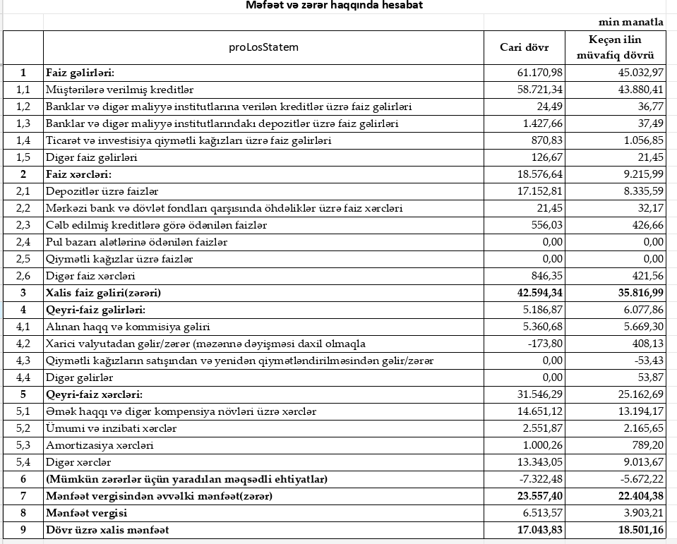 Bu bank 17 milyon manatdan çox xalis mənfəət açıqladı