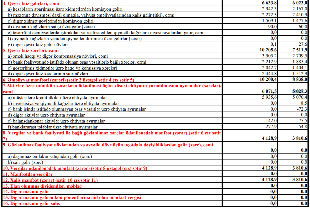 Müqayisə üçün qeyd edək ki, 2022-ci ilin  birinci yarısında "Ziraat Bank Azərbaycan"ın əməliyyat mənfəəti 8 milyon 838 min manat təşkil etmişdi və ehtiyata 5 milyon 27 min manat ayırmışdı.
