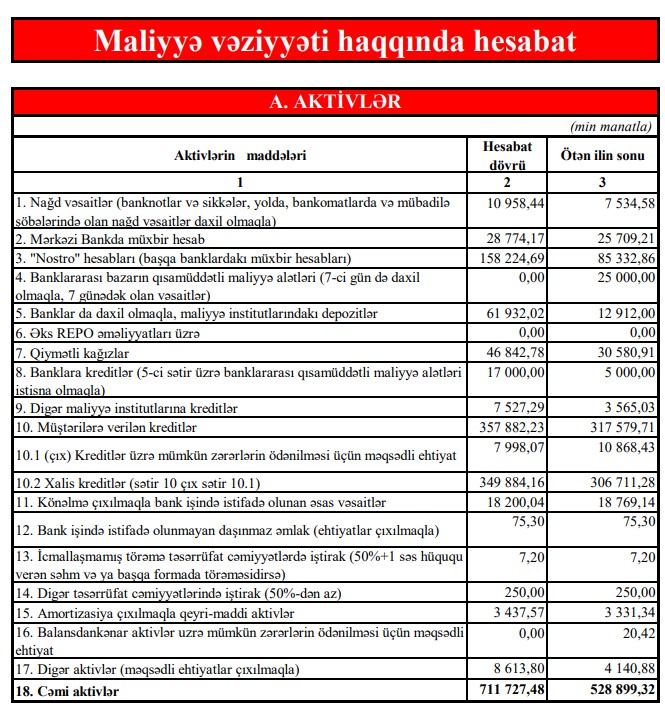 "Ziraat Bank Azərbaycan"ın cəmi aktivləri 2023-cü ilin 9 ayı ərzində 183 milyon manata yaxın artaraq 712 milyon manata yaxınlaşıb.
