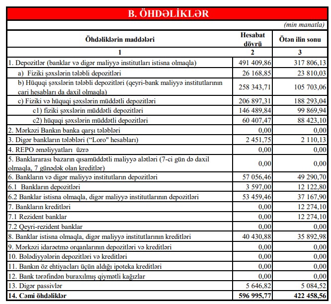 "Ziraat Bank Azərbaycan"da depozitlər 2023-cü ilin 9 ayı ərzində 2022-ci ilin sonu ilə müqayisədə 173 milyon 603 min manat və ya 54,6% artaraq 491 milyon 409 min manata çatıb. O cümlədən, fiziki şəxslərin müddətli depozitləri 46 milyon 620 min manat və ya 46,7% artaraq 146 milyon 489 min manata çatıb. Bankda hüquqi şəxslərin tələbli depozitləri isə 152 milyon 640 min manat və ya 2,4 dəfə artaraq 258 milyon 343 min manata yüksəlib.