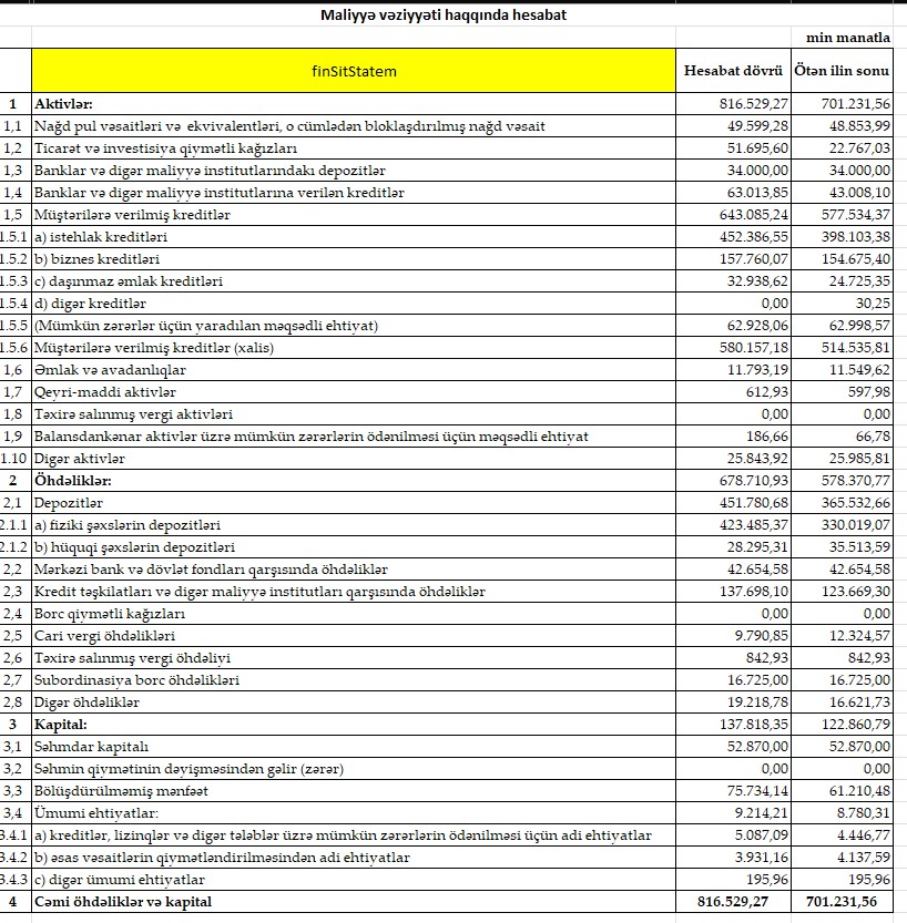 BANK BÖYÜMƏKDƏ DAVAM EDİB
