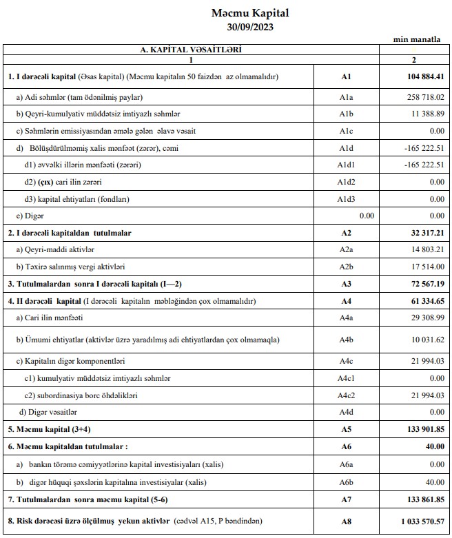 - Eyni zamanda, bankın likvid aktivləri 331.1 milyon manat təşkil edir ki, bu da cəmi aktivlərin 23.7%-i həcmindədir.