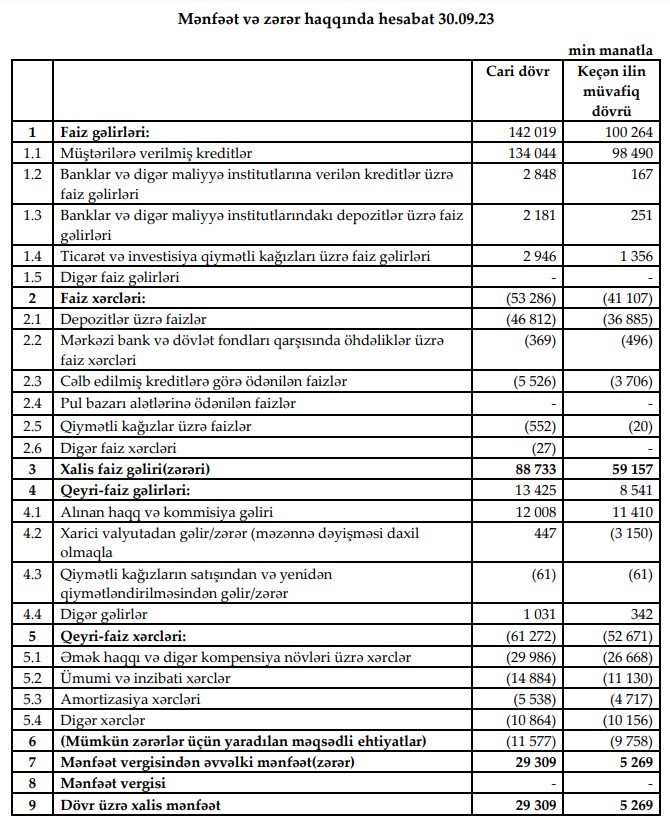 - Faiz gəlirləri 41.6% artaraq, 142 milyon manata çatıb. Xalis faiz gəlirləri isə 55.2% artıb və 88.7 milyon manata yüksəlib.