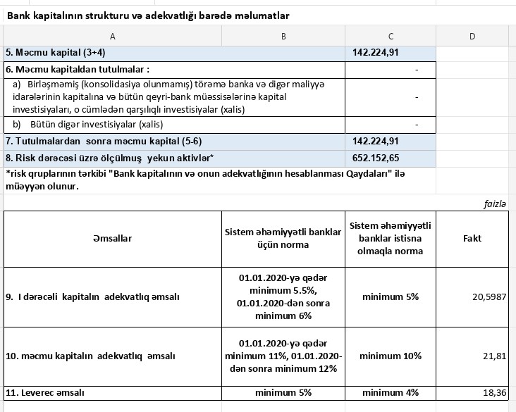 Ötən ilin sonunda Bankın cəmi öhdəlikləri 706 milyon 158 min manat, o cümlədən cəmi depozitlər 491 milyon 756 min manat olmuşdu. Depozitlərin 394 milyon 655 min manatını fiziki şəxslərin depozitləri, 97 milyon 101 min mantı hüquqi şəxslərin depozitləri təşkil etmişdi.