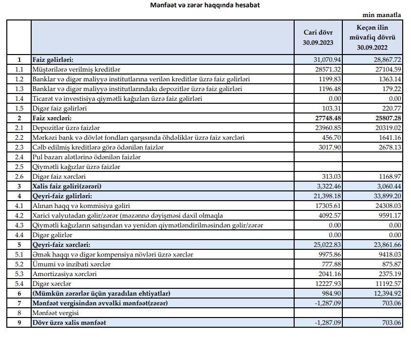 "Muğanbank" 2023-cü ilin 9 ayının 1 milyon 287 min manat xalis zərər ilə başa vurub. 2023-cü ilin yanvar-sentyabr dövründə "Muğanbank"ın cəmi gəlirləri 52 milyon 469 min manat, cəmi xərcləri 52 milyon 771 min manat təşkil etmişdi (xərcləri gəlirlərini üstələmişdi). Eyni zamanda, bank mümkün zərərlər üçün yaradılan ehtiyatlara 985 min manat ayımışdı.