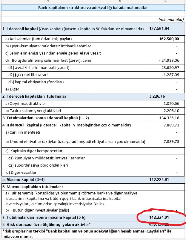Xəbər verdiyimiz kimi Azərbaycan Respublikası Mərkəzi Bankının İdarə Heyətinin 18 oktyabr 2023-cü il tarixli Qərarı ilə məcmu kapitalının miqdarının banklar üçün müəyyən edilmiş minimum miqdarından az olduğuna, məcmu kapitalının adekvatlıq əmsalının 3 faizdən az olmasına, cari fəaliyyətini etibarlı və prudensial qaydada həyata keçirmədiyinə, habelə bankın daxili idarəetmə və nəzarət prosedurları adekvat olmadığına görə "Muğanbank" ASC-nin lisenziyası ləğv olunub. Mərkəzi Bankın açıqlamasından belə çıxır ki, "Muğanbank"ın məcmu kapitalı 50 milyon mantdan aşağı düşüb.