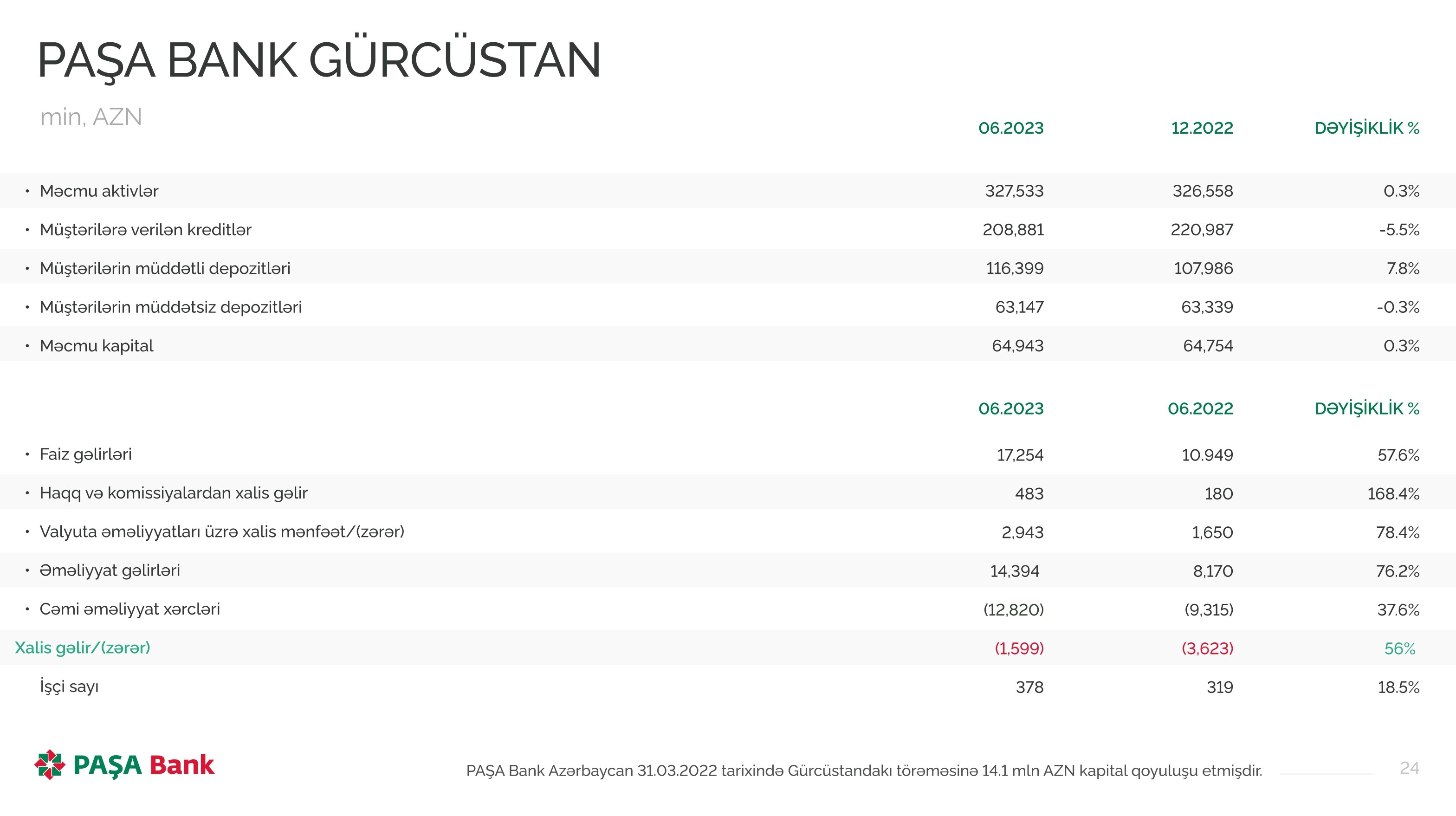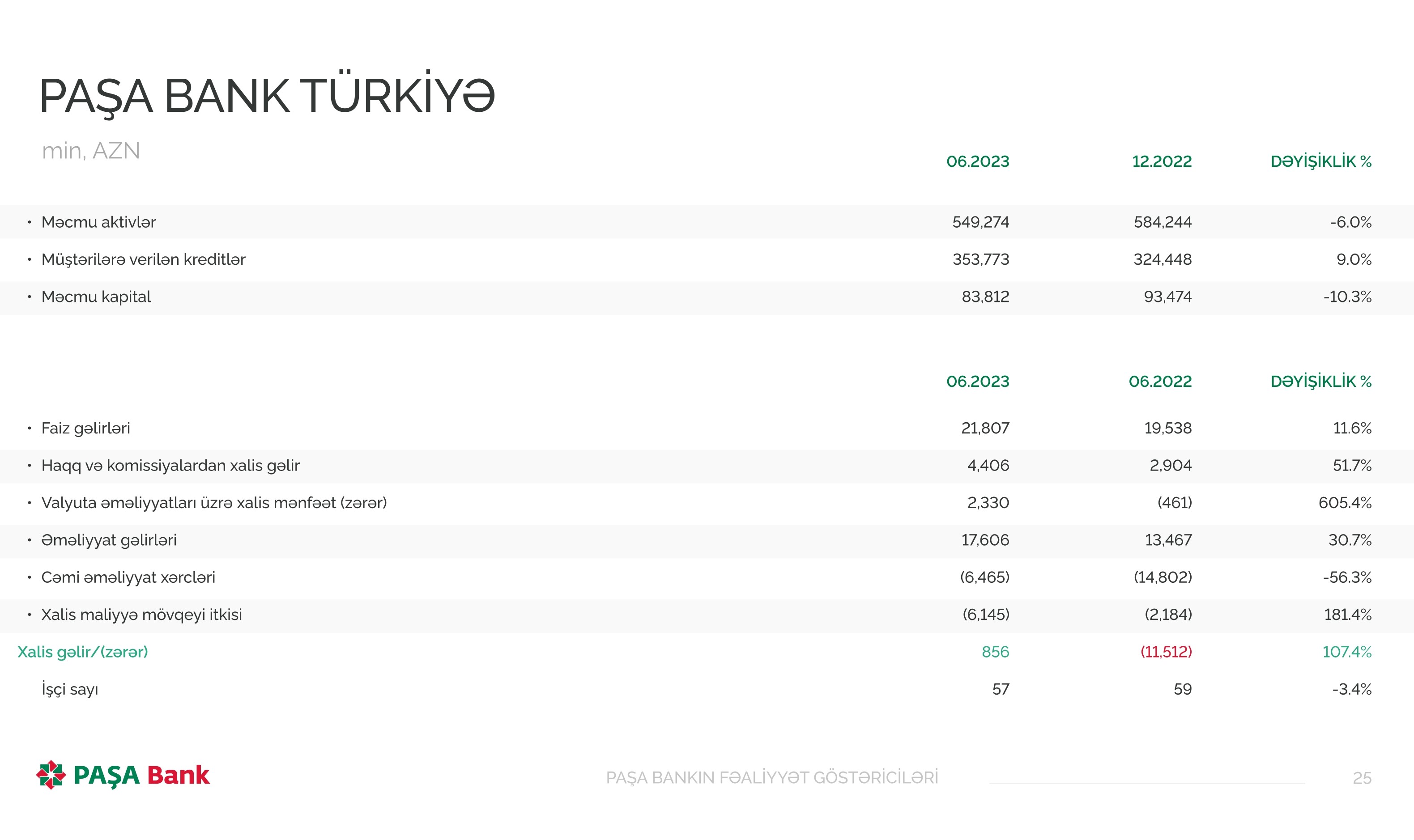 2023-cü ilin ilk 6 ayını "PAŞA Bank Gürcüstan" 1 milyon 599 min manat xalis zərər ilə, "PAŞA Bank Türkiyə" isə 856 min manat xalis mənfəət ilə başa vurub.