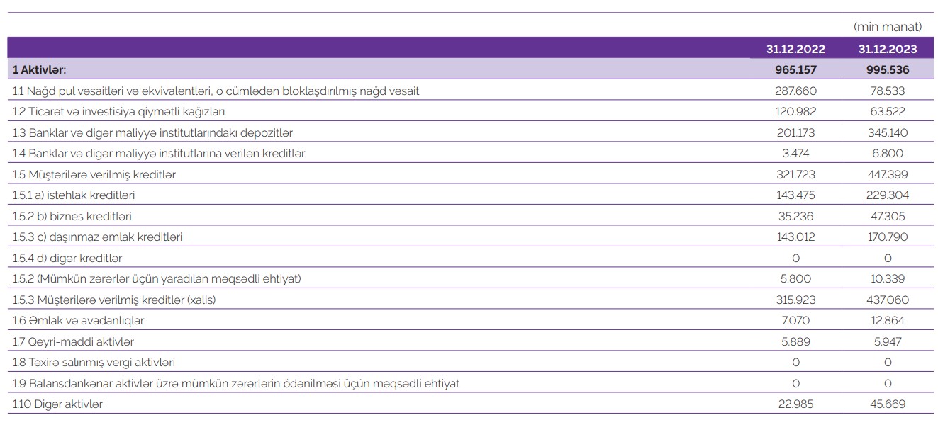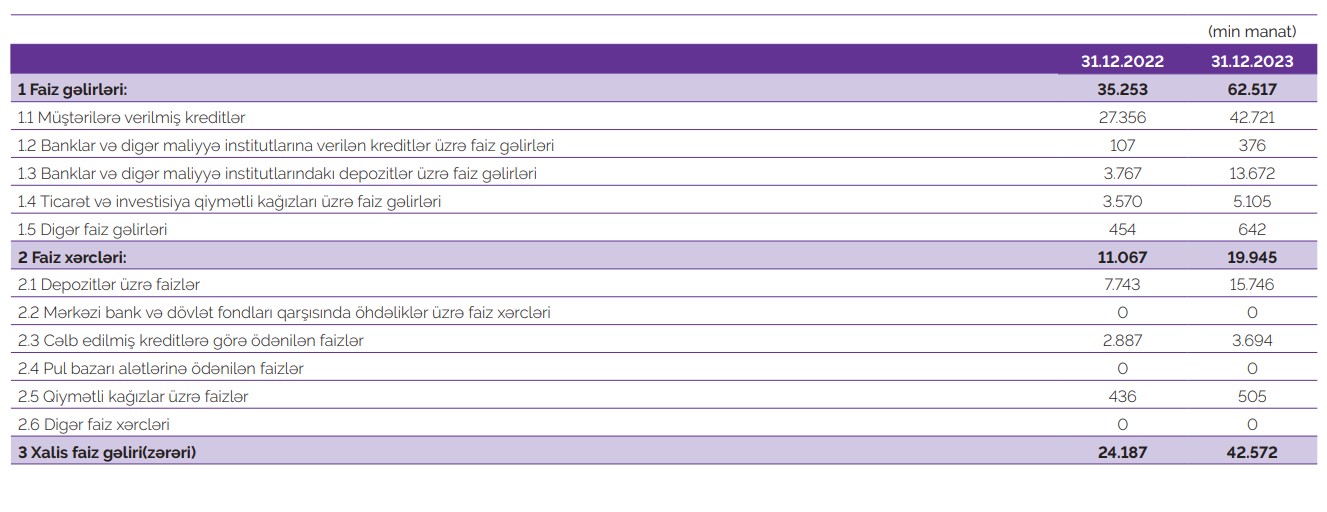 Qeyd edilib ki, Bankın kredit portfelinin həcmi 447,4 milyon manat təşkil etmişdir ki, bu da ötən ilki göstəriciyə nisbətən 40% çoxdur.