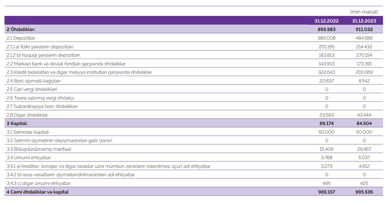 Cəmi bank öhdəliklərinin həcmi 911 milyon manat səviyyəsindədir.