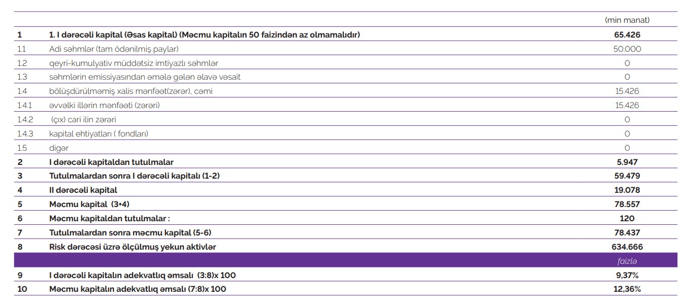 Bankın məcmu kapitalının həcmi 25% artaraq, 78,5 milyon manat olmuşdur.