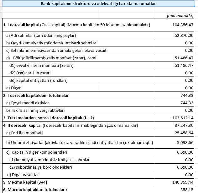 Müqayisə üçün qeyd edək ki, 2022-ci ildə "Bank of Baku"nın cəmi əməliyyat gəlirləri 111 milyon 874 min manat, cəmi əməliyyat xərcləri 77 milyon 776 min manat, əməliyyat mənfəəti 34 milyon 98 min manat, eyhiyatdan qayıdan məbləğ 12 milyon 103 min manat, ödənilən mənfəət vergisi 9 milyon 335 min manat təşkil etmişdi.