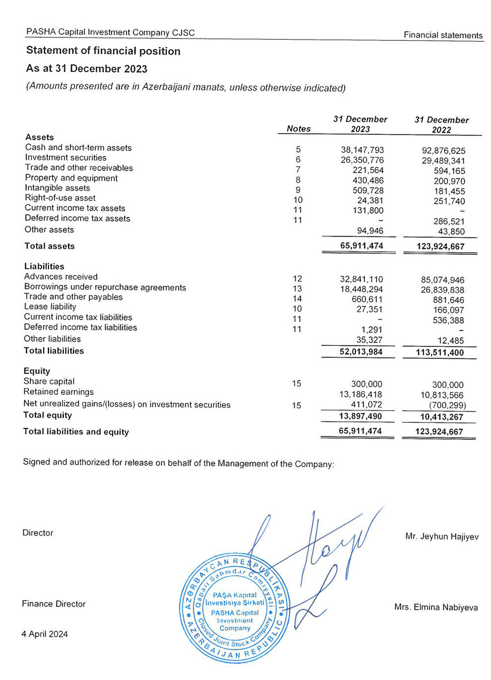 "PAŞA Kapital İnvestisiya Şirkəti" QSC 2023-cü ili 2 milyon 373 min manat xalis mənfəət ilə başa vurub. Şirkət 2022-ci ili 3 milyon 502 min manat xalis mənfəət ilə bağlamışdı. Ötən il "PAŞA Kapital"ın gəlirləri artıb, lakin faiz və işçi heyəti üzrə xərclərdəki böyük artım xalis mənfəətin azalması ilə nəticələnib.