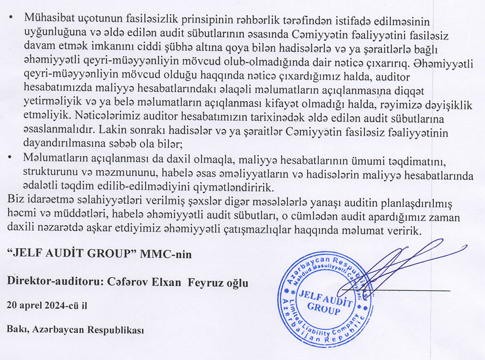 "Xəzər Kredit İttifaqı" MMC-nin 31 dekabr 2023-xü il tarixində bitən il üzrə maliyyə hesabatları.