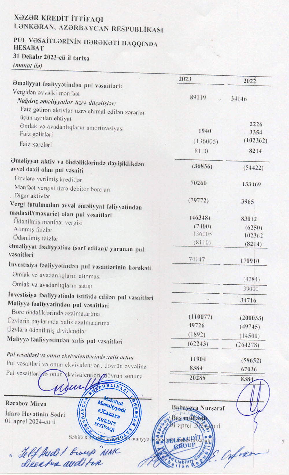 "Xəzər Kredit İttifaqı" MMC-nin 2023-cü il üzrə maliyyə hesabatları