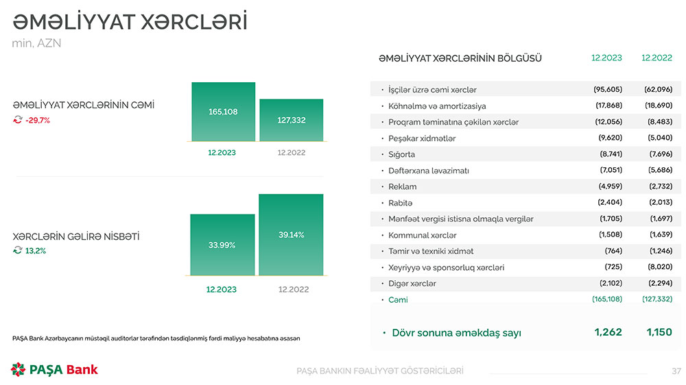 “PAŞA Bank” ASC-nin 2023-cü ilin nəticələri barədə daha ətraflı aşağıdakı göstəricilərdən tanış ola bilərsiniz.