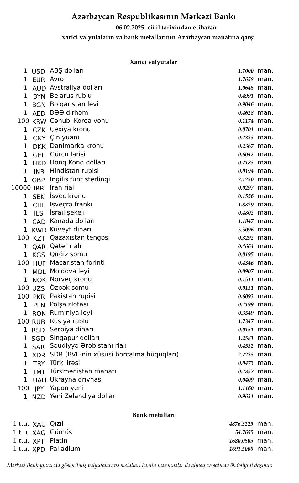 Dolların sabah üçün rəsmi məzənnəsi müəyyən olunub