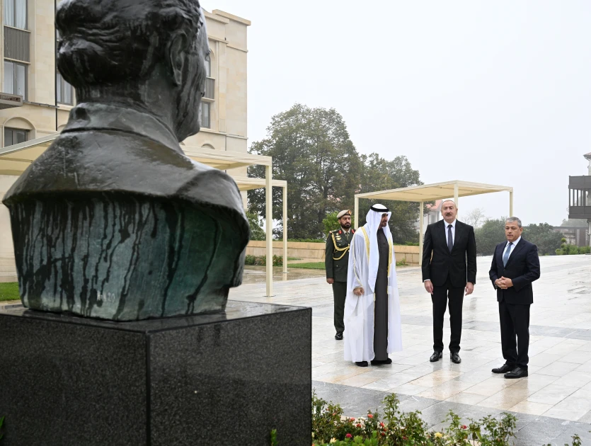 Sentyabrın 16-da Azərbaycan Respublikasının Prezidenti İlham Əliyev və Birləşmiş Ərəb Əmirliklərinin Prezidenti Şeyx Məhəmməd bin Zayed Al Nəhyan Şuşada Azərbaycanın tanınmış şəxsiyyətləri Natəvanın, Bülbülün və Üzeyir Hacıbəylinin erməni işğalçıları tərəfindən güllələnmiş heykəllərinə baxıblar.
