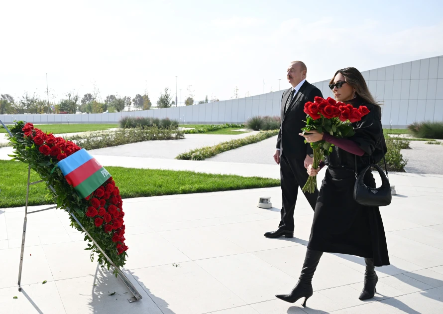 Birinci xanım Mehriban Əliyeva abidənin önünə gül dəstələri düzdü.