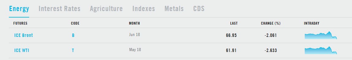 Bakı vaxtı ilə saat 22:00-a olan məlumata görə, Brent nefti 2% ucuzlaşaraq 66,95 dollara düşüb. Qərbi Texas nefti isə 2,6% ucuzlaşaraq 61,91 dollara geriləyib.