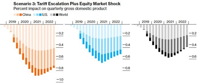Əgər; əlavə gömrük vergiləri bütün ABŞ - Çin məhsullarını əhatə edərsə, bazarlar cavab olaraq ani və kəskin düşərsə, qlobal iqtisadiyyat 2021-ci ildə 600 milyard dollar azala bilər.