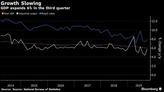 Çinin iqtisadi artımı üçüncü rübdə daxili zəif tələbat və ticarət müharibəsinin ixracı zəiflətməsi ilə yavaşlayıb.
