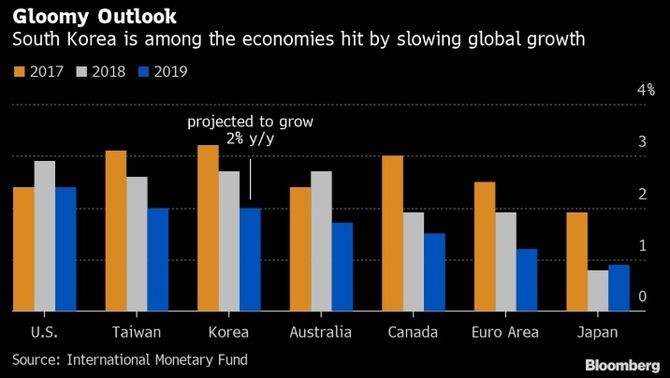 Cənubi Koreyada iqtisadi artım ticarət müharibəsinin investisiyalara mənfi təsiri ilə əlaqədar olaraq zəifləyib.