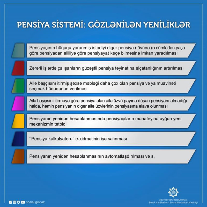Əmək və Əhalinin Sosial Müdafiəsi Nazirliyinin yaydığı məlumata görə, pensiya sistemində aşağıdakı istiqamətlərdə islahatlar aparılacaqdır: