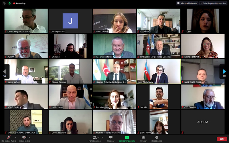 Argentinanın Xarici İşlər Nazirliyi, AZPROMO və hər iki ölkənin digər qurumları bu gün kənd təsərrüfatı, süd və ət sənayesi üçün maşınqayırma sahəsində ilk "Argentina və Azərbaycan Sahibkarları arasında B2B Virtual Görüşü"nü təcrübədən keçirib.