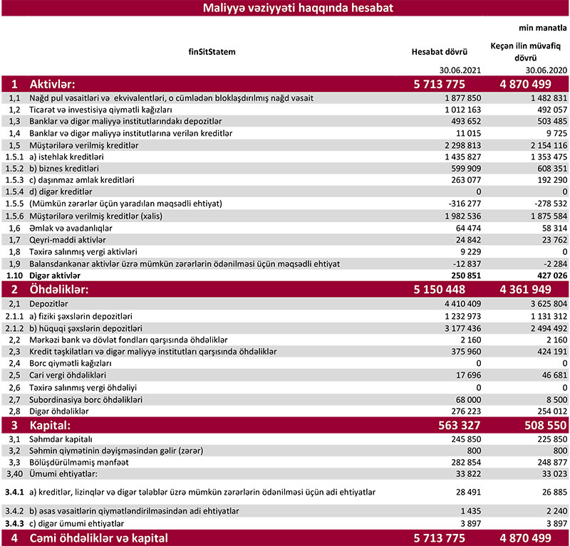 Azərbaycanın iri bankından 6 ayda 100 milyon manata yaxın xalis mənfəət