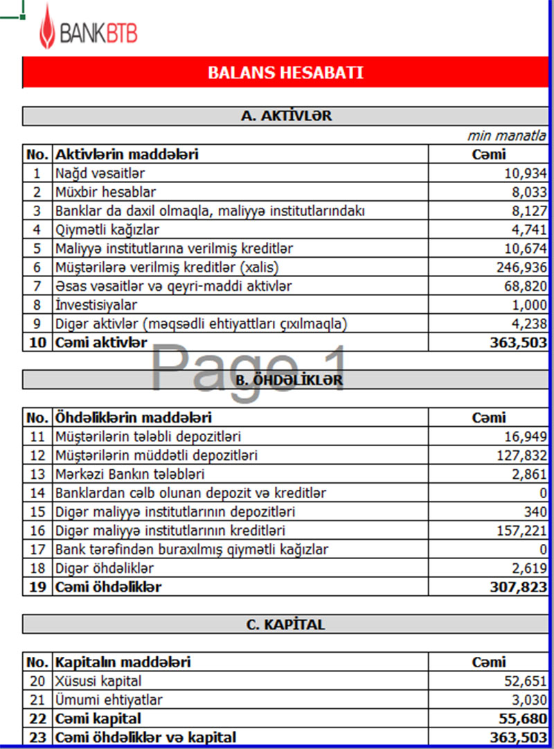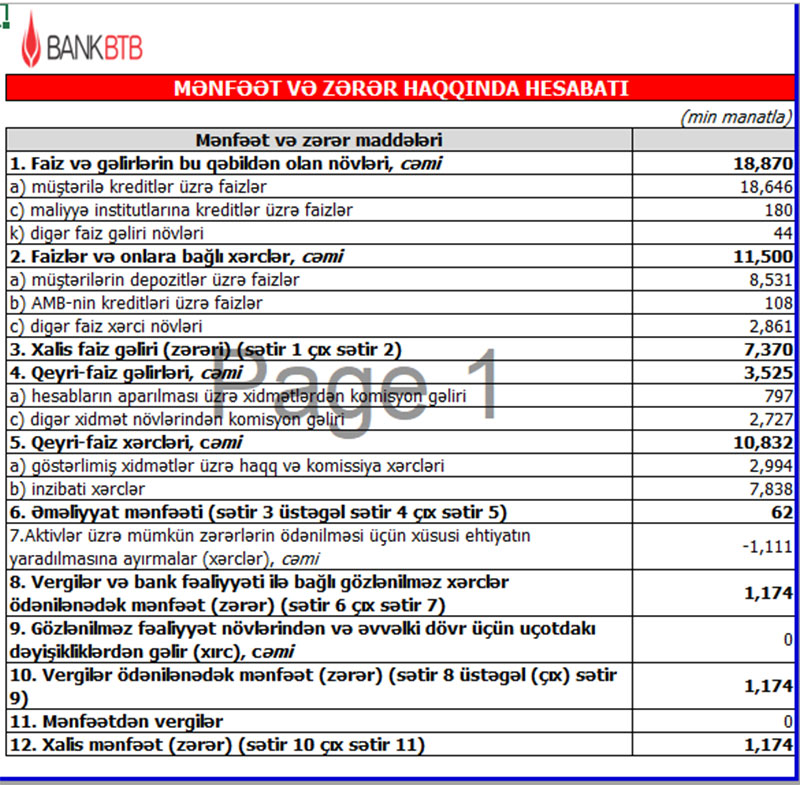 Bank BTB 9 ayı xalis mənfəətlə başa vurub - MALİYYƏ VƏZİYYƏTİ
