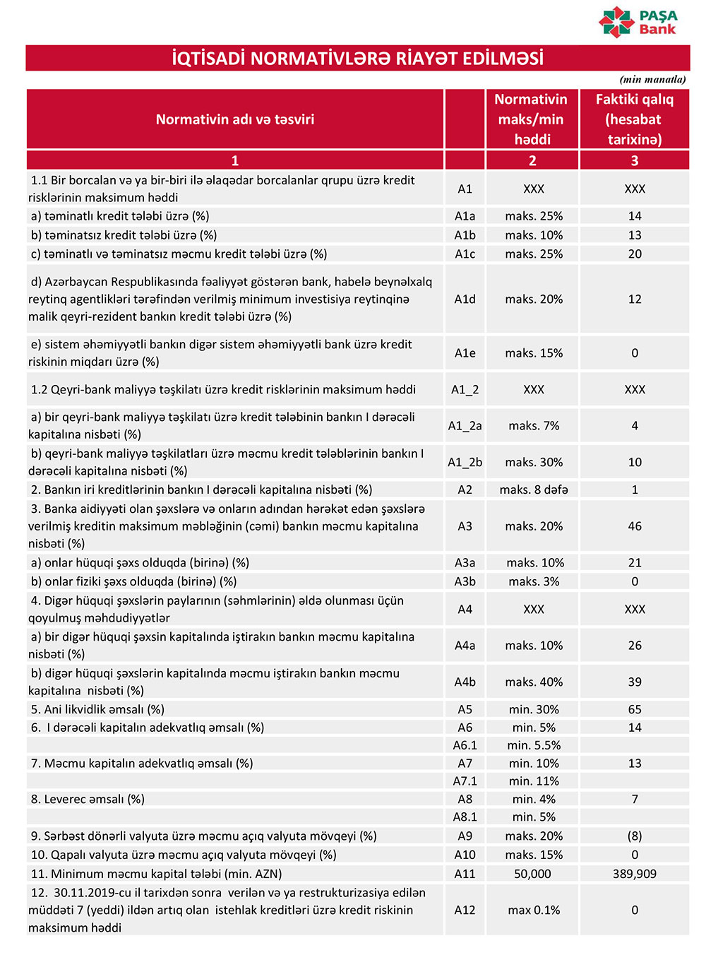 30 Sentyabr 2021-ci il tarixində “PAŞA Bank” 389 milyon 909 min manat məcmu kapitala malik olub.
